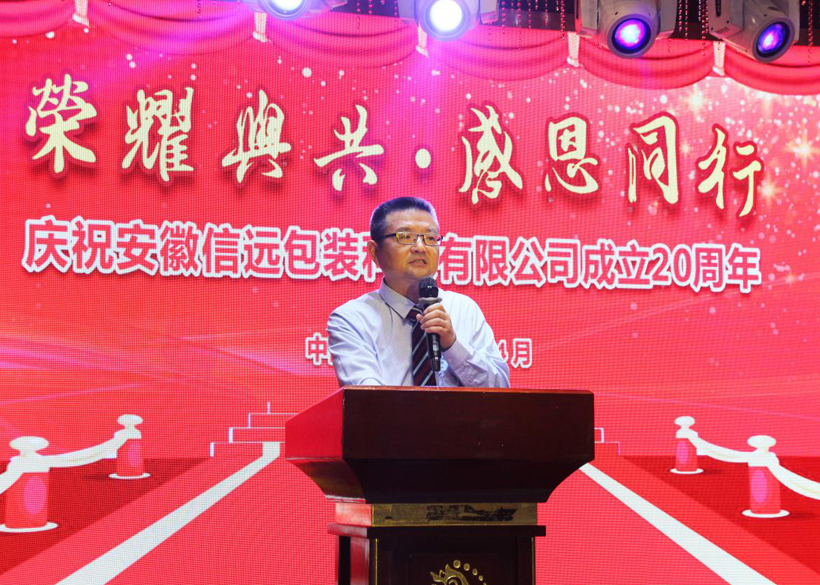 2021年4月18日,是安徽信遠(yuǎn)包裝科技有限公司成立20周年的喜慶日子。為感恩這個偉大的時代,感謝一路相伴成長的信遠(yuǎn)人和社會各界朋友,信遠(yuǎn)科技在合肥尚爵大酒店隆重舉行了“榮耀與共 感恩同行——慶祝信遠(yuǎn)科技成立20周年”慶典活動。公司管理層、各界嘉賓朋友、各部門領(lǐng)導(dǎo)和員工近200人歡聚一堂,一起重溫信遠(yuǎn)科技的往昔崢嶸,共話當(dāng)下成就,追夢精彩未來!