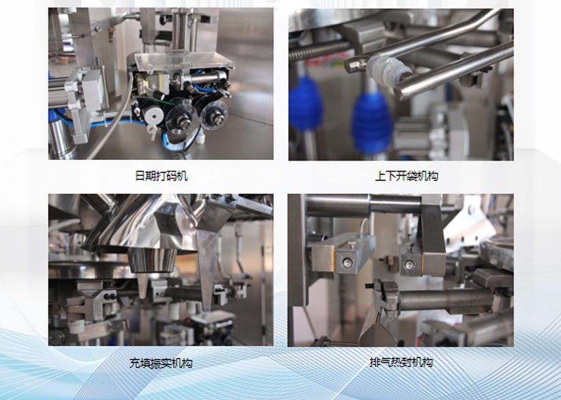 包裝機根據(jù)程序設(shè)計,自動完成取袋、立式上袋、打碼、開袋、充填、振實、熱封以及整形輸出等各工位的有序運行。
