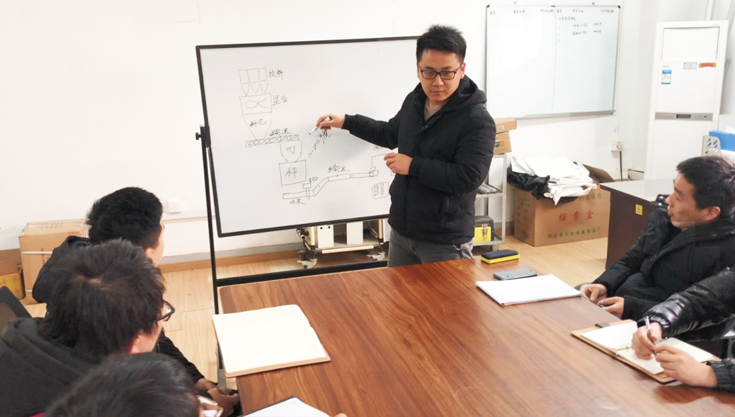 集成化的成套生產線設備作為信遠公司的重點業(yè)務,有著復雜的模塊聯(lián)動和嚴苛的技術標準,要完美解決這些難題,開發(fā)設計出精確的電氣運行數(shù)據(jù)是核心技術。王聲根作為電氣工程方面的專家,每項業(yè)務都能根據(jù)產品規(guī)格把生產精度控制在客戶要求之內。他和技術團隊先后研發(fā)的配方肥生產控制系統(tǒng)、超微細粉重袋上袋計量充填包裝技術、全自動機械手裝箱控制技術、全自動制袋包裝機等新型技術,已在肥料、化工、食品、飼料、獸藥等領域廣泛應用。