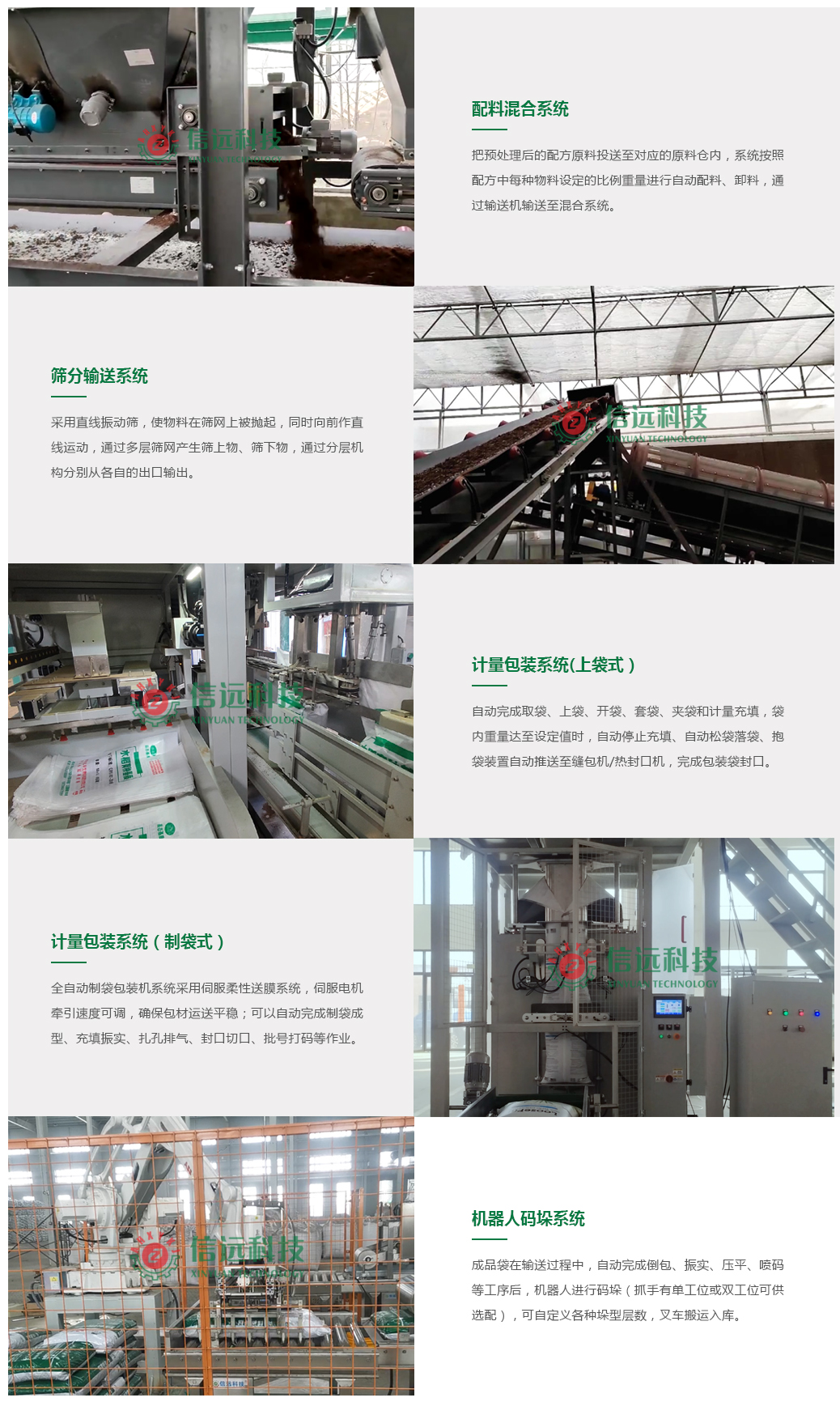 主要由配料、混合、包裝、碼垛四大工段設(shè)備組成
