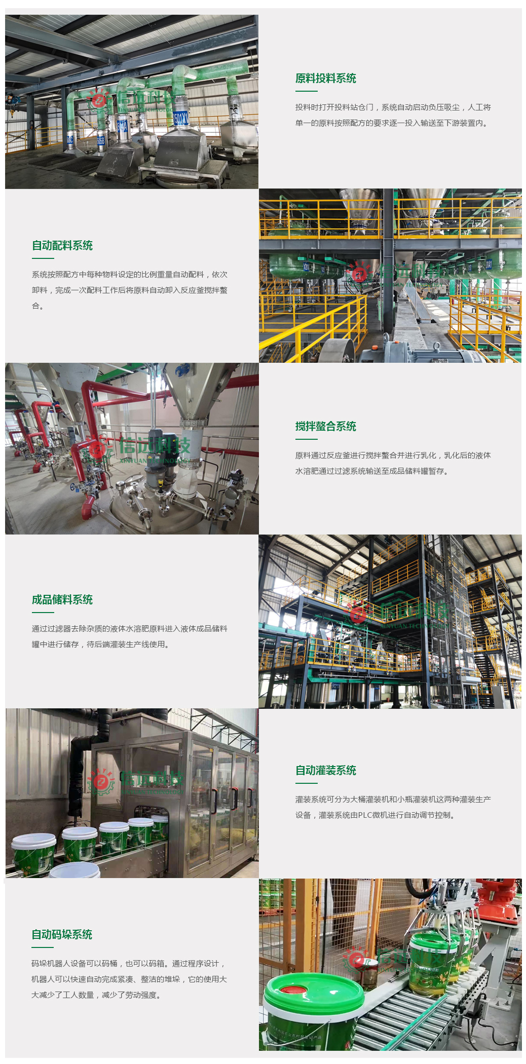 生產(chǎn)大量元素、氨基酸、腐植酸等多種類型的液體水溶肥產(chǎn)品