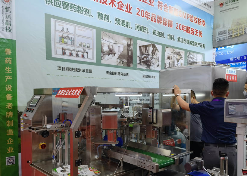 在這三個國家級的大型行業(yè)展會上,信遠科技分別展出了獸藥、肥料、食品三個領域的明星產品設備和生產解決方案。展會期間,信遠科技的展位異?;鸨吮姸鄥蛻赳v足觀看咨詢。信遠科技現場工作人員熱情接待、認真傾聽、詳細解說,與每一位前來參觀的客戶都進行了深入溝通,并針對客戶的不同需求提供了個性化的解決方案,受到了參會客戶的一致認可和好評。2021年6月下旬,安徽信遠包裝科技有限公司分別應邀參加了中國獸醫(yī)藥品監(jiān)察所、中國獸藥協(xié)會在鄭州國際會展中心聯合主辦的第八屆中國獸藥大會;中國食品和包裝機械工業(yè)協(xié)會與中國包裝和食品機械有限公司在上海國家會展中心聯合主辦的第二十一屆上海國際食品加工與包裝機械展覽會;中國國際貿易促進委員會化工行業(yè)分會在上海新國際博覽中心主辦的第二十二屆中國國際農用化學品及植保展覽會(CAC2021)三大展會。