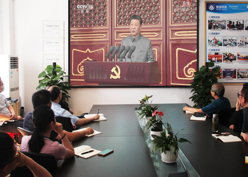 7月1日上午8時(shí),慶祝中國(guó)共產(chǎn)黨成立100周年大會(huì)在北京天安門廣場(chǎng)隆重舉行。安徽信遠(yuǎn)包裝科技有限公司組織班子成員、黨員干部和部分職工集中觀看大會(huì)直播盛況,認(rèn)真聆聽(tīng)了習(xí)近平總書記在大會(huì)上的重要講話,共同見(jiàn)證建黨100周年來(lái)我國(guó)發(fā)展建設(shè)所取得的偉大成就。