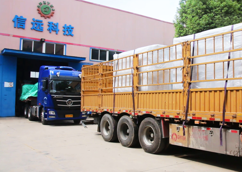 伴隨著響亮的汽笛聲,一輛輛滿載著客戶設(shè)備的重型卡車駛離信遠科技的大門,奔赴在前往客戶駐地的寬闊大道上,為客戶設(shè)備的及時交付帶去“信遠制造”和“信遠速度”,為合作客戶的順利生產(chǎn)爭分奪秒、保駕護航。