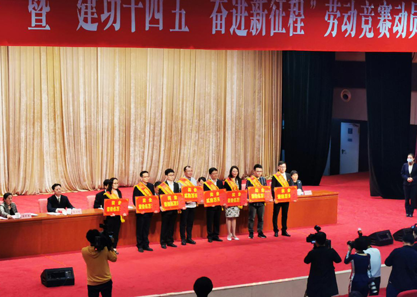 2021年4月30日,熱烈祥和的合肥市政府禮堂內(nèi),正在舉行慶?!拔逡弧濒摺敖üκ奈?奮進新征程”勞動競賽動員大會。省委常委、市委書記虞愛華,市委副書記、市長羅云峰等市領(lǐng)導(dǎo)端坐在主席臺上。伴隨著雄壯的頒獎進行曲、主持人鏗鏘有力的誦讀著五一勞動獎?wù)芦@得者的名字,獲獎?wù)邆兎纸M上臺接受領(lǐng)導(dǎo)頒獎。此時熱烈的掌聲響徹整個禮堂,耀眼的鎂光燈照亮著每一位獲獎?wù)叩哪橗嫞瑓R聚成一首致敬勞動者的贊歌。這首贊歌里的主人公就有來自信遠科技的電氣工程師——王聲根。