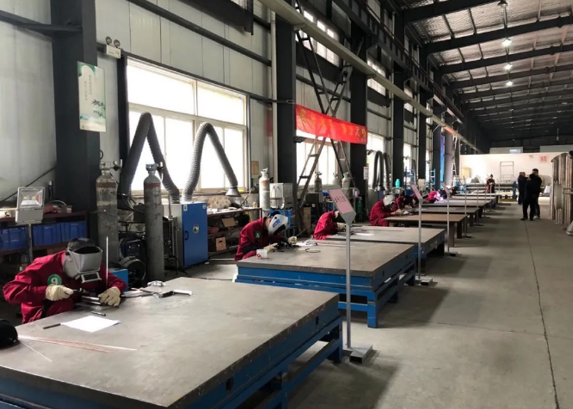 我司的氬弧焊工組9人與裝配車間11人共計20人參加了此次技能大賽。本次競賽內(nèi)容包括專業(yè)理論知識考試、技能實操考試兩部分,主要考核參賽隊員的基本理論和專業(yè)知識水平以及操作技能和解決實際問題的能力。其中,理論考試占總成績的20\%,技能實操考試占總成績的80\%,兩項合計滿分為100分,按總成績排列名次。