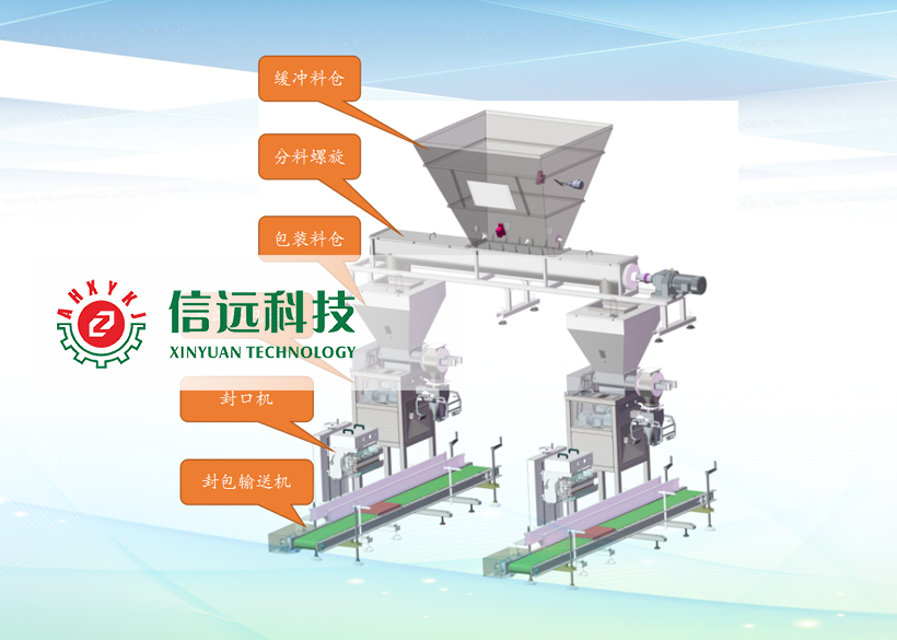 安徽信遠包裝科技小編接下來為大家講解全自動粉劑水溶肥生產(chǎn)設備中計量包裝系統(tǒng)部分