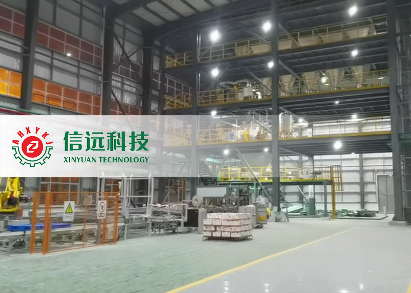 這套設(shè)備是原料經(jīng)過人工投料后,不同配方、不同配置比例的物料原料會自動進(jìn)行自動配料和自動混合?;旌暇鶆蚝蟮脑陷斔椭涟b機(jī)上方的儲料倉斗內(nèi),倉斗內(nèi)的物料通過螺旋給料的方式充填進(jìn)包裝袋中,包裝系統(tǒng)可以自動完成上袋、夾袋、充填、抱袋、松袋、送袋等作業(yè)程序,全程自動化,無需人工參與。待稱重傳感器檢測到袋內(nèi)物料重量達(dá)到設(shè)定數(shù)值時,自動停止充填、傳感器會自動發(fā)送信號至夾袋工序進(jìn)行松袋落袋。落在輸送帶上的包裝袋自動推送至自動折邊縫包機(jī)前進(jìn)行縫包封口成品。成品袋在輸送過程中,自動完成倒包、振實(shí)、壓平等理包整形工序后,由機(jī)器人完成碼垛入庫,日產(chǎn)量可以達(dá)到200噸左右。這種產(chǎn)能的后端設(shè)備一般都是和包裝系統(tǒng)一起同時配置多條輸送理包碼垛生產(chǎn)設(shè)備。