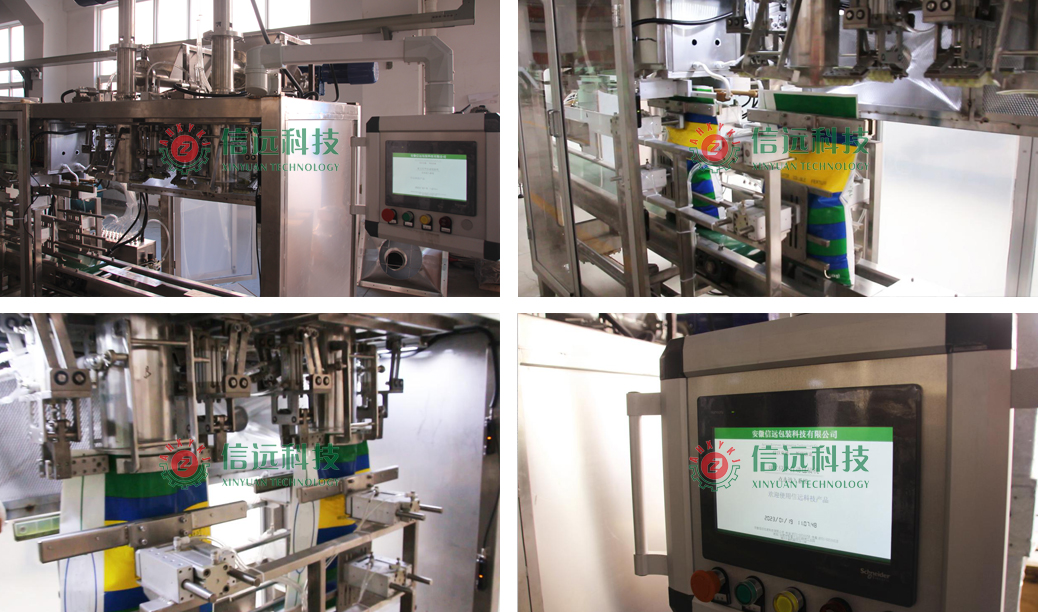 信遠(yuǎn)科技新一代雙工位粉劑包裝機,采用PLC智能微機控制,交互界面操作簡易,自動化程度高。從進料到封口均由兩套獨立機構(gòu)組成,速度快、效率高;在觸摸屏面板上可以完成手動操作和自動操作的切換,各種參數(shù)可以隨意調(diào)整,同時具有包裝記數(shù)和重量累計功能;夾袋充填裝置采用下料通道和除塵通道分離技術(shù),減少粉塵的外溢;該機設(shè)有振動裝置和袋外輔助排氣裝置,下料完成后托放袋底,將袋中物料振實,排出袋內(nèi)部分氣體,減少粉狀物料在包裝袋內(nèi)的空氣含量而造成脹包等現(xiàn)象,確保封口整齊美觀;整機精密元器件均采用國內(nèi)外知名品牌,密封設(shè)計,適合粉塵環(huán)境使用,確保設(shè)備長期、穩(wěn)定運行;該機有故障自動診斷功能和聲光報警系統(tǒng),及時對出現(xiàn)的問題進行警報,同時設(shè)置開門停機保護裝置,有效保護操作人員安全生產(chǎn)。
