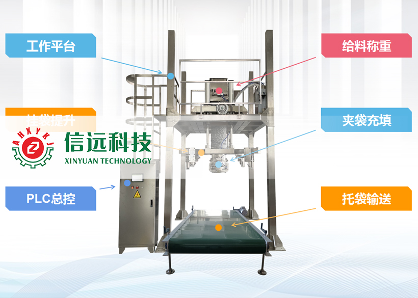 信遠(yuǎn)科技全自動(dòng)噸袋包裝機(jī)組,廣泛應(yīng)用于電力、煤炭、石化、化工、化肥、糧食、飼料、冶金、環(huán)保、建材、塑料、橡膠、染料、新材料等行業(yè)大型軟袋顆粒物料或粉狀物料的自動(dòng)定量包裝。