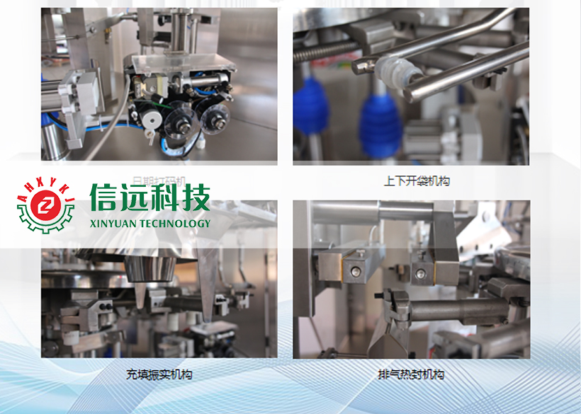 包裝機(jī)根據(jù)程序設(shè)計(jì),自動(dòng)完成取袋、立式上袋、打碼、開(kāi)袋、充填、振實(shí)、熱封以及整形輸出等各工位的有序運(yùn)行。