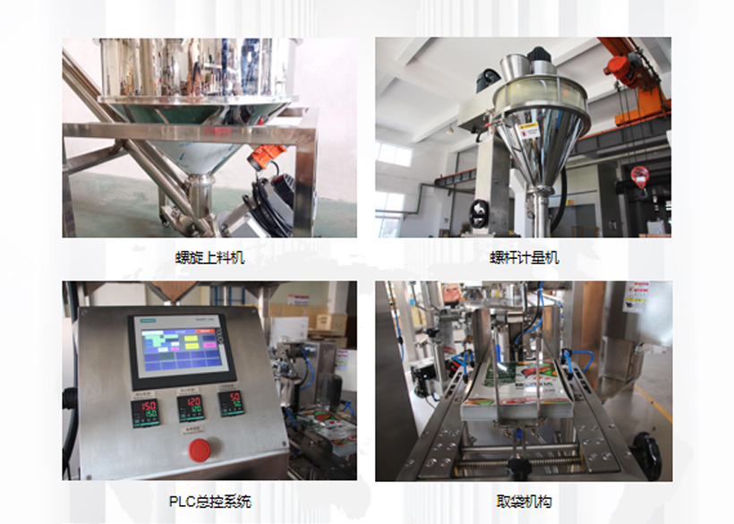 包裝機根據(jù)程序設(shè)計,自動完成取袋、立式上袋、打碼、開袋、充填、振實、熱封以及整形輸出等各工位的有序運行。