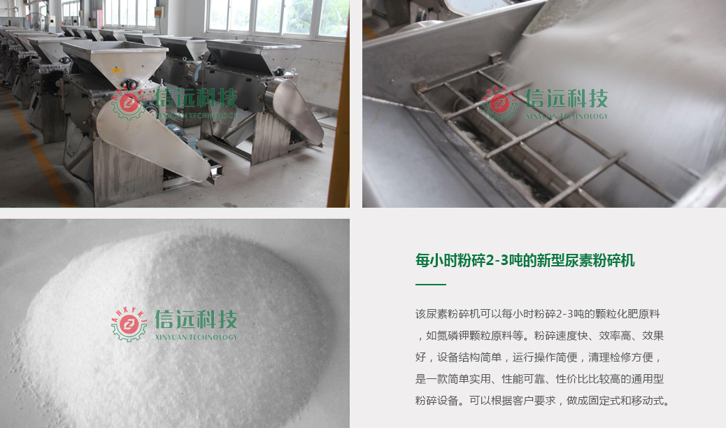 安徽信遠(yuǎn)包裝科技有限公司SG600S型對輥式尿素粉碎機,是一款專門針對顆?;试线M(jìn)行粉碎的新型專用生產(chǎn)設(shè)備。該尿素粉碎機可以每小時粉碎2-3噸的顆粒化肥原料,如氮磷鉀顆粒原料等。粉碎速度快、效率高、效果好,設(shè)備結(jié)構(gòu)簡單,運行操作簡便,清理檢修方便,是一款簡單實用、性能可靠、性價比比較高的通用型粉碎設(shè)備。可以根據(jù)客戶要求,做成固定式和移動式。