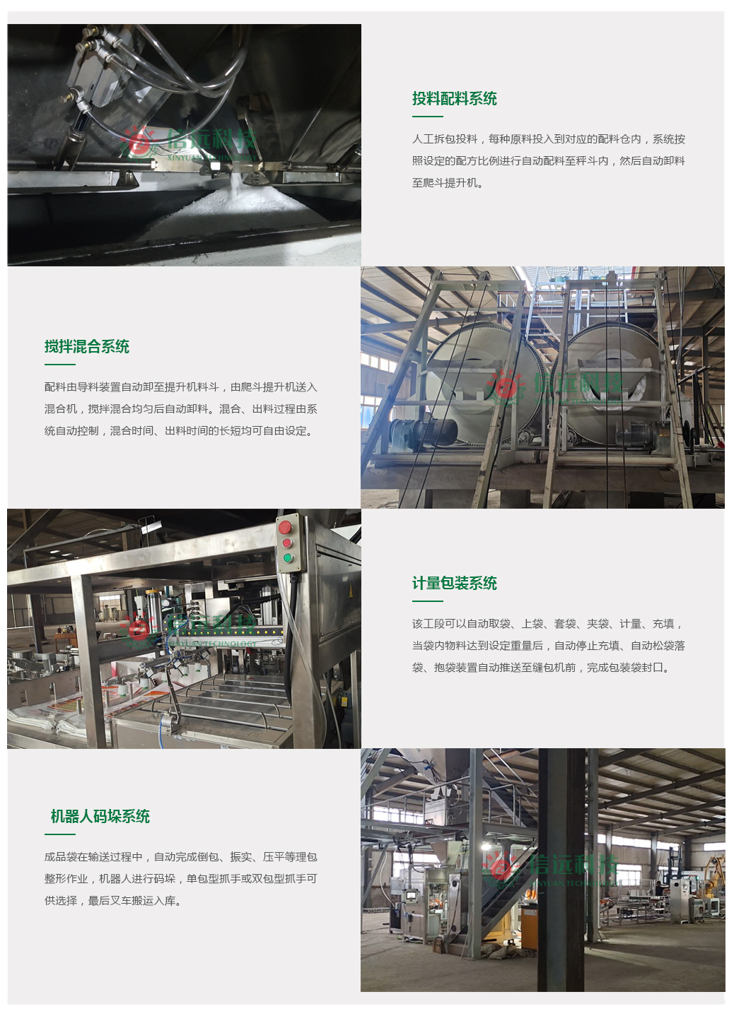 可以包裝4-6種配方的、單袋為20-50kg的摻混肥、BB肥、配方肥產(chǎn)品。該方案是一套全自動(dòng)化生產(chǎn)線,只需幾名投料工人即可完成整條生產(chǎn)線的運(yùn)行。在計(jì)算機(jī)系統(tǒng)控制下,成套設(shè)備以一致和恒定的速度工作,保證了產(chǎn)品的穩(wěn)定性和一致性,提高了生產(chǎn)效率,降低了生產(chǎn)成本,縮短了交貨周期。信遠(yuǎn)科技特別提示:在年產(chǎn)20萬(wàn)噸這種大產(chǎn)能的生產(chǎn)作業(yè)中,非自動(dòng)化的操作容易使工人疲勞,甚至發(fā)生工傷的情況,該方案通過(guò)減少人工干預(yù),有效降低作業(yè)風(fēng)險(xiǎn)和勞動(dòng)強(qiáng)度。
