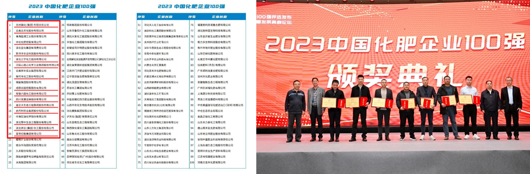 12月14日,由中國化工情報(bào)信息協(xié)會(huì)、中國化工信息中心、泰安市人民政府主辦,中國化肥信息中心、泰安市商務(wù)局(市投資促進(jìn)局)承辦的“2023(第十六屆)中國化肥100強(qiáng)評(píng)選發(fā)布暨中國化肥產(chǎn)業(yè)高質(zhì)量發(fā)展高峰論壇”在山東省泰安市盛大召開!本次會(huì)議以“加快培育世界一流企業(yè) 助力構(gòu)建高質(zhì)量發(fā)展”為主題,旨在發(fā)揮一流企業(yè)榜樣示范作用、聚焦于行業(yè)熱點(diǎn)、痛點(diǎn),共同探討、推動(dòng)我國化肥產(chǎn)業(yè)高質(zhì)量發(fā)展。會(huì)上,2023中國化肥百強(qiáng)榜單正式發(fā)布!其中,貴州磷化(集團(tuán))有限責(zé)任公司位列第一,云南云天化股份有限公司、青海鹽湖工業(yè)股份有限公司分別位列二三位。通過榜單評(píng)選,引領(lǐng)行業(yè)理性認(rèn)識(shí)新發(fā)展格局下面臨的機(jī)遇和挑戰(zhàn),引導(dǎo)企業(yè)主動(dòng)適應(yīng)變革,實(shí)現(xiàn)轉(zhuǎn)型升級(jí);加快培育具有行業(yè)引領(lǐng)力與全球競爭力的世界一流肥料企業(yè)集群。