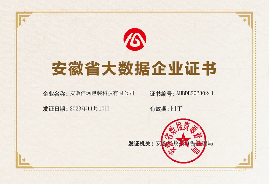 11月3日,安徽省數(shù)據(jù)資源管理局網(wǎng)站發(fā)布《關(guān)于2023年度安徽省大數(shù)據(jù)企業(yè)名單的公示》。安徽信遠(yuǎn)包裝科技有限公司憑借在自動化設(shè)備領(lǐng)域長期的數(shù)據(jù)積累和數(shù)據(jù)應(yīng)用,以及借助大數(shù)據(jù)信息助推兩化融合發(fā)展的優(yōu)秀成績,成功榮獲“安徽省大數(shù)據(jù)企業(yè)”稱號。該稱號是信遠(yuǎn)科技繼榮獲安徽省新產(chǎn)品、安徽省著名商標(biāo)、安徽省專精特新企業(yè)等多項認(rèn)定后,又一項省級榮譽認(rèn)定。