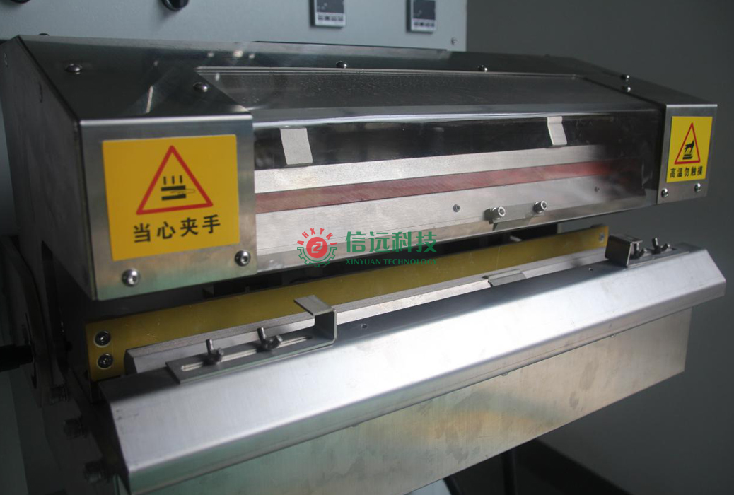 信遠科技XY-M500/T型M袋熱封口機,在使用過程中,要注意以下幾個事項:1、加熱塊齒形表面要保持清潔,當沾有包裝袋熔料后,要用專用銅刷清理;2、加熱塊表面溫度高,操作時手不要接觸加熱體,或將手放入加熱塊閉合區(qū)域,以免引起燙傷和機械擠壓傷;3、該機加熱體高度可以上下調(diào)節(jié),通過設備支架上的調(diào)節(jié)螺栓來實現(xiàn);4、氣缸的進氣壓力可調(diào),可通過進氣接口處的調(diào)節(jié)閥來調(diào)整。