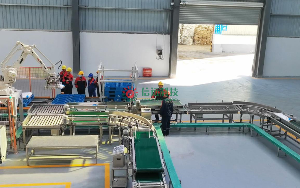 各位網(wǎng)友大家好,前面兩期我們講過水溶肥生產(chǎn)線的重袋包裝機和縫包封口機,今天我們講一下水溶肥重袋包裝產(chǎn)品的后端設(shè)備:理包輸送機、碼垛機器人和碼垛托盤庫。該后端設(shè)備是一套集成化的組合系統(tǒng),結(jié)構(gòu)設(shè)計成熟,運行平穩(wěn)可靠,整個輸送碼垛過程完全自動化,正常運轉(zhuǎn)時無須人工干預(yù)。近年來,全自動輸送碼垛一體化設(shè)備已在各大肥料廠家廣泛應(yīng)用。