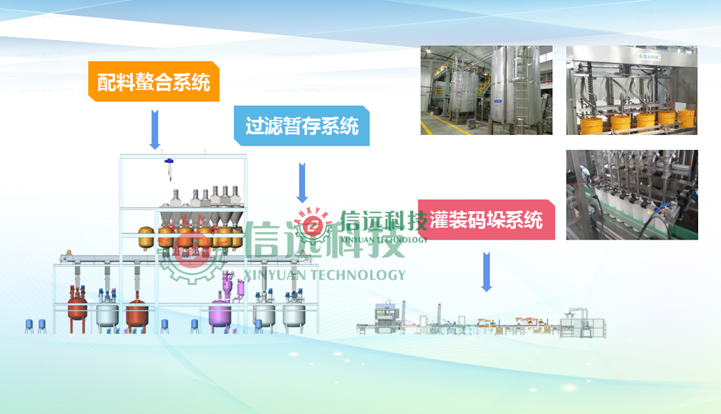 信遠(yuǎn)科技液體肥成套生產(chǎn)線設(shè)備,采用塔式立體結(jié)構(gòu)設(shè)計(jì),由投料系統(tǒng)、預(yù)處理系統(tǒng)、配料系統(tǒng)、螯合系統(tǒng)、計(jì)量灌裝系統(tǒng)、上蓋封口系統(tǒng)、噴碼貼標(biāo)系統(tǒng)、機(jī)器人裝箱碼垛系統(tǒng)等組成。可以生產(chǎn)瓶裝、桶裝的液體水溶肥、液體生物肥、液體有機(jī)肥、液體菌劑、植物營(yíng)養(yǎng)液等各種液態(tài)類肥料及輔助劑產(chǎn)品。